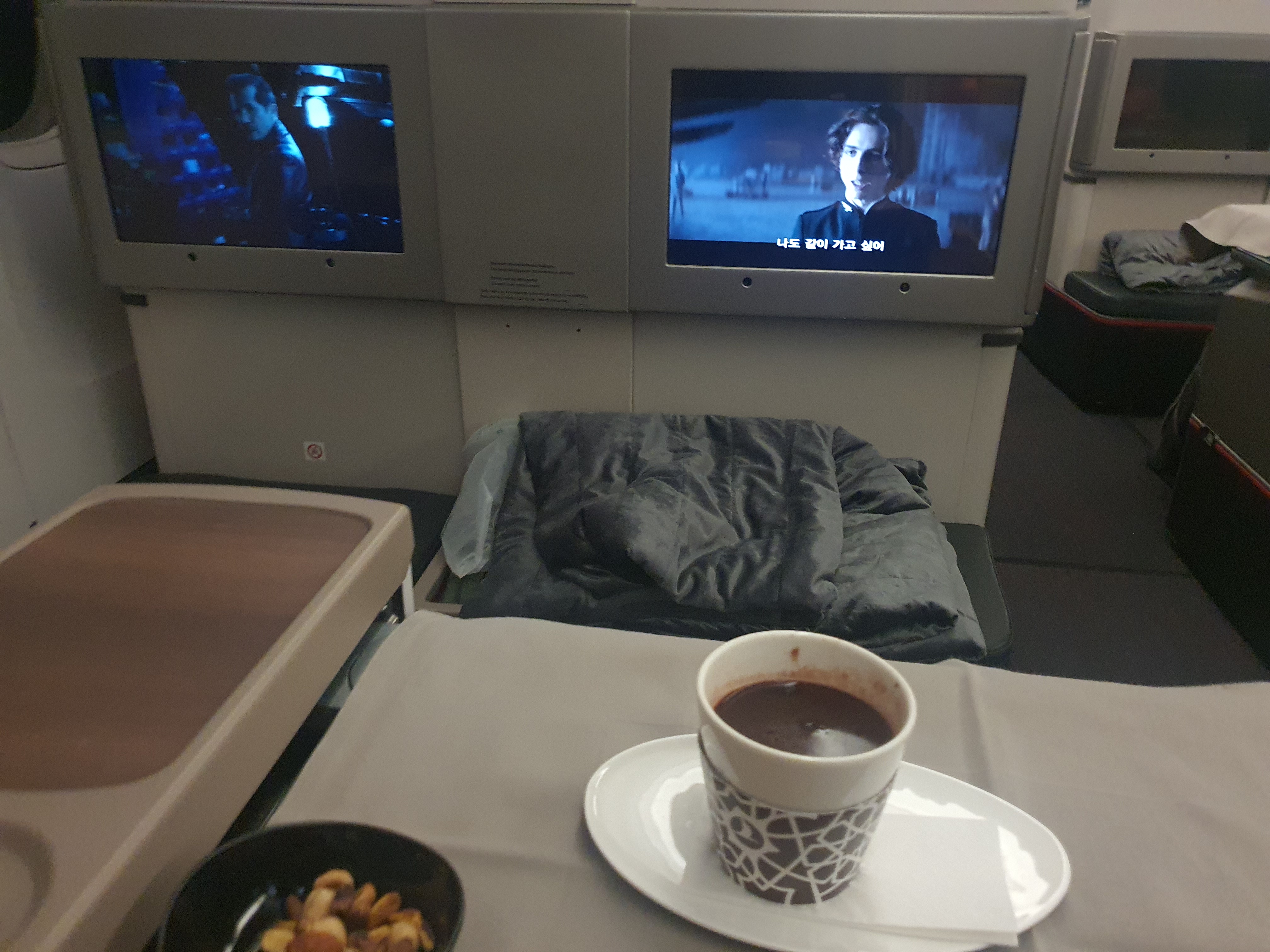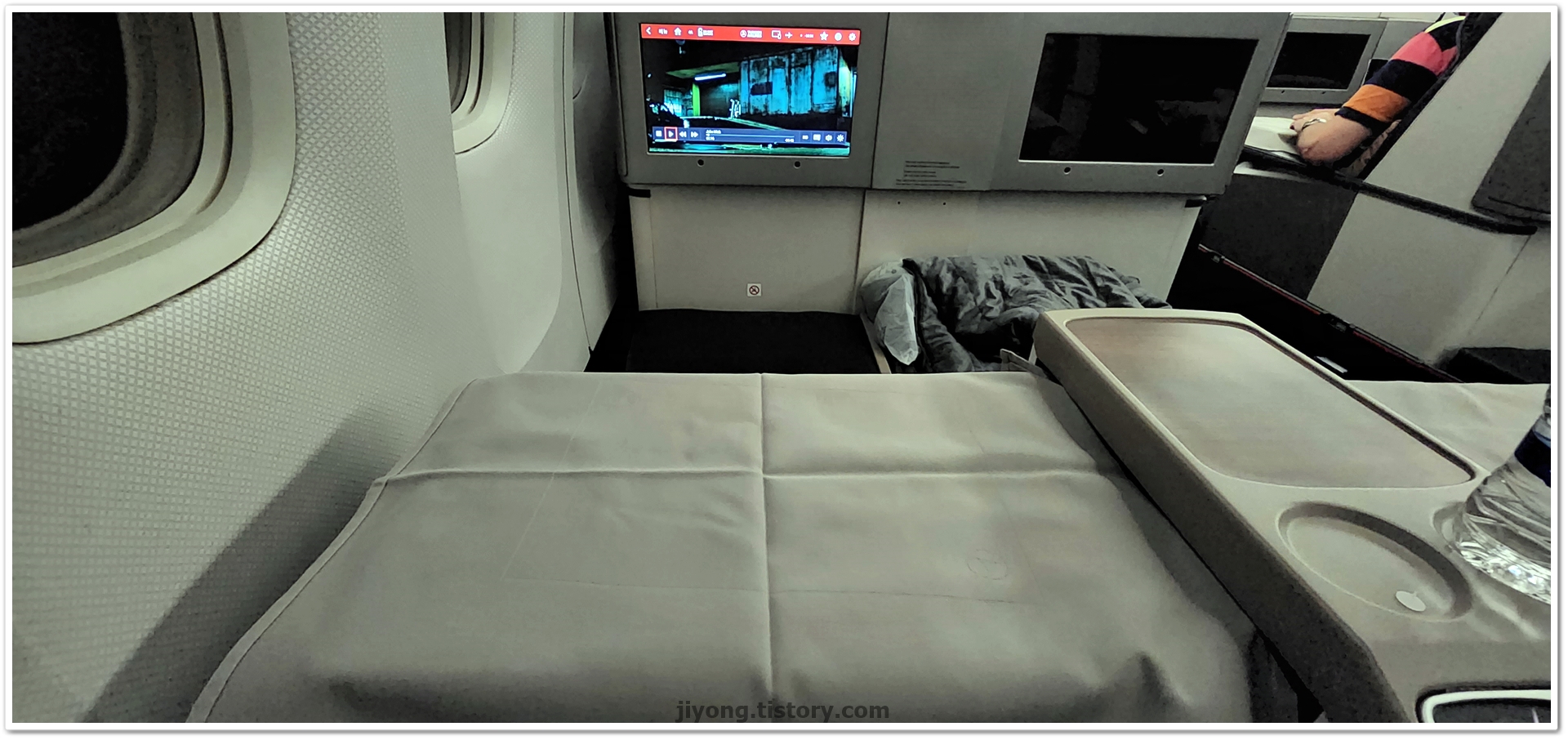 내 자리는 비즈니스 석 라인의 프론트 부분에 제일 뒤쪽인 04A라서 잠자기엔 너무 좋았다. 다른 비즈니스 좌석보다 창문이 1개 없어서인지