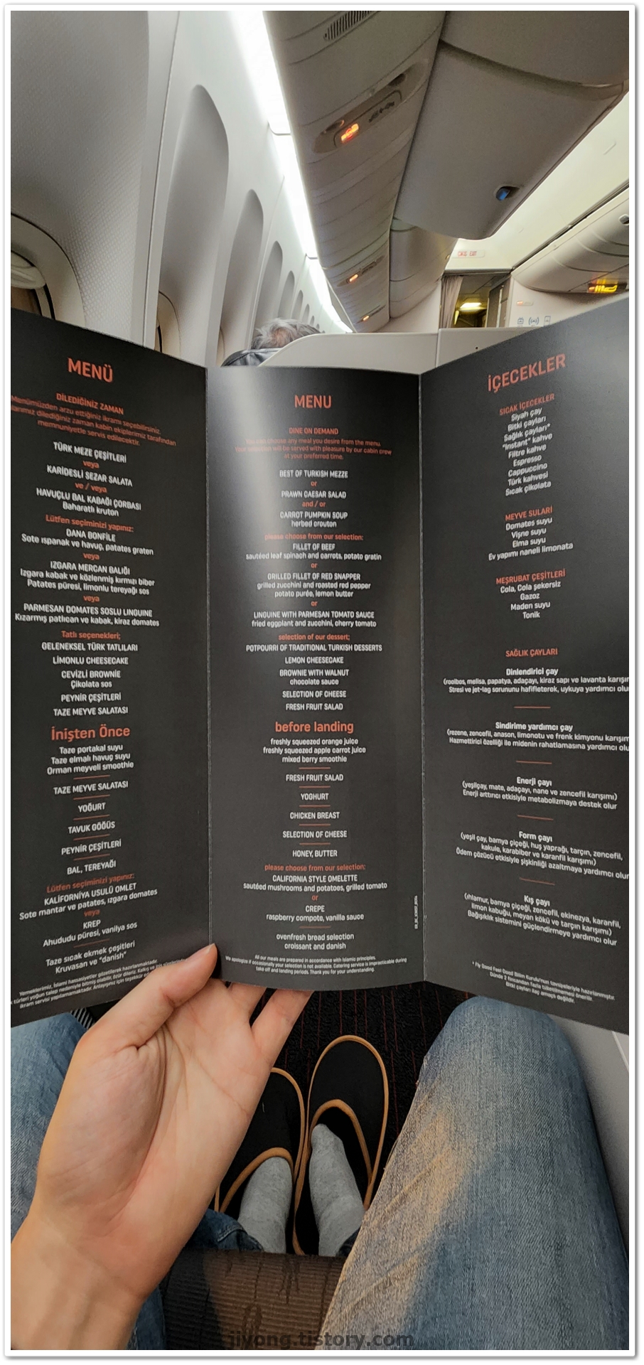 기내 쉐프가 주문을 받길래 메뉴판을 보며 무엇을 먹을까 고민고민