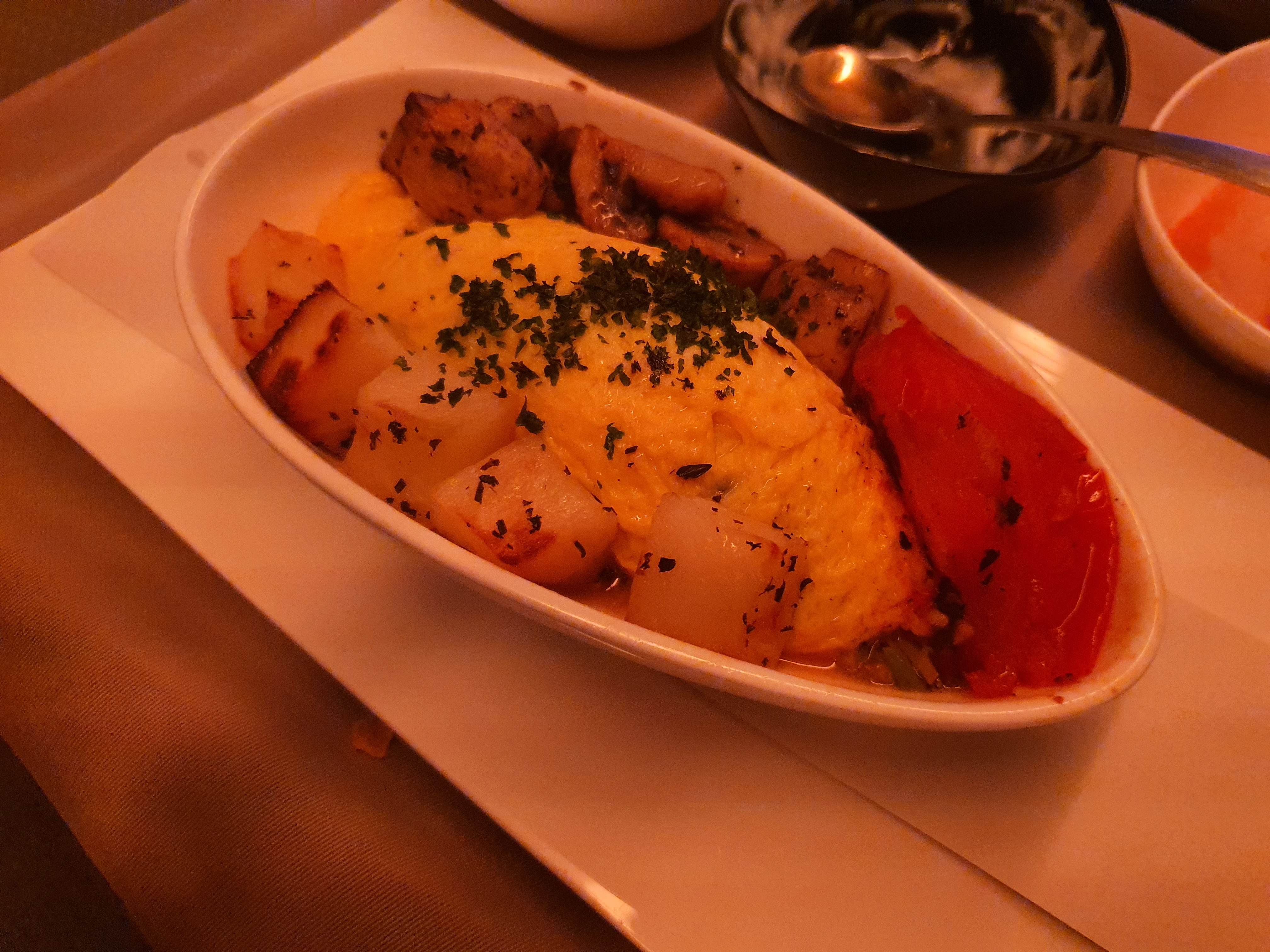 일어나서 아침식사는 신선한 과일과 오믈렛으로 시작