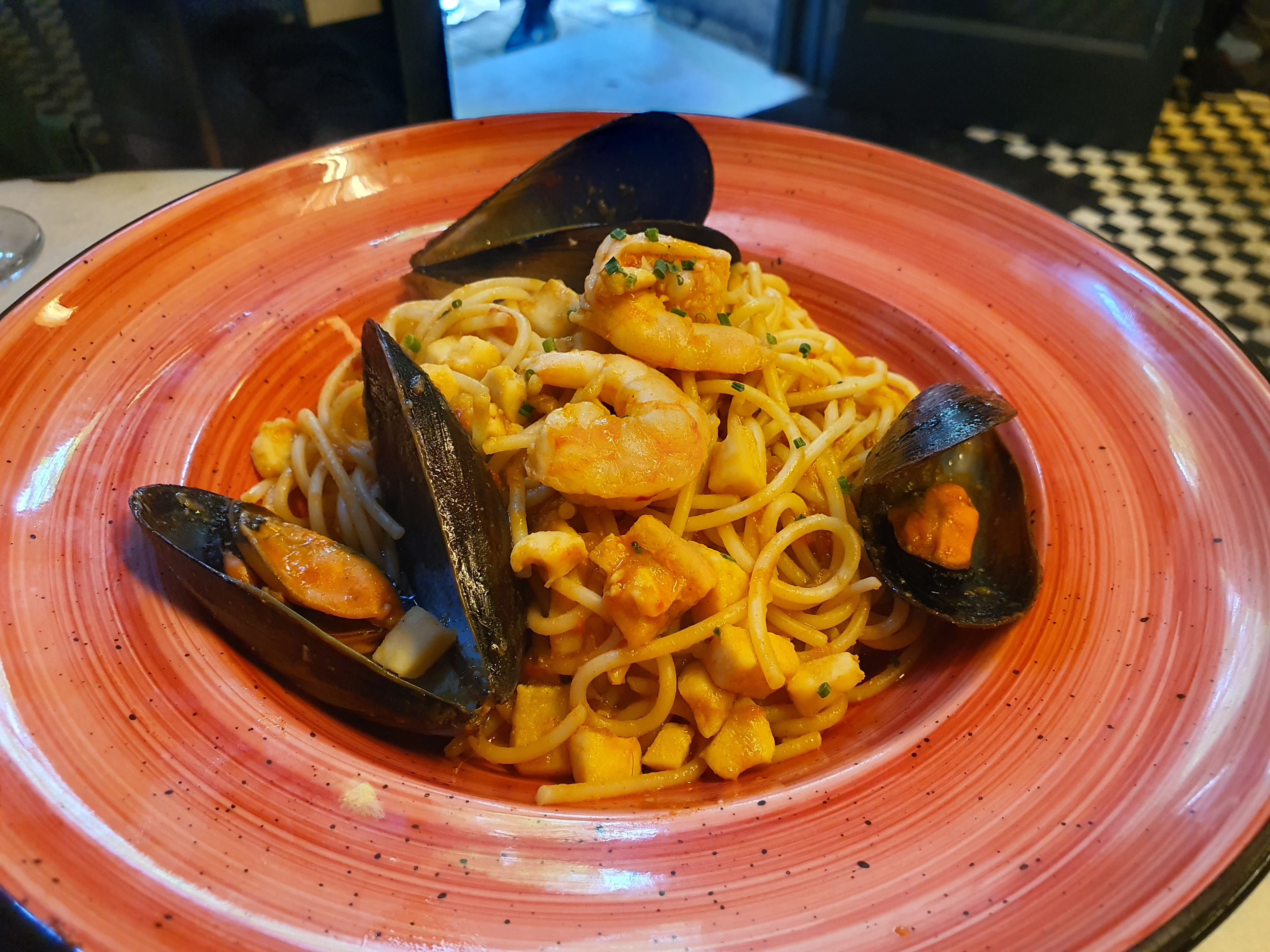 오징어와 새우 그리고 홍합이 들어간 봉골레. 기본맛은 한데 추천은 하지 않는다