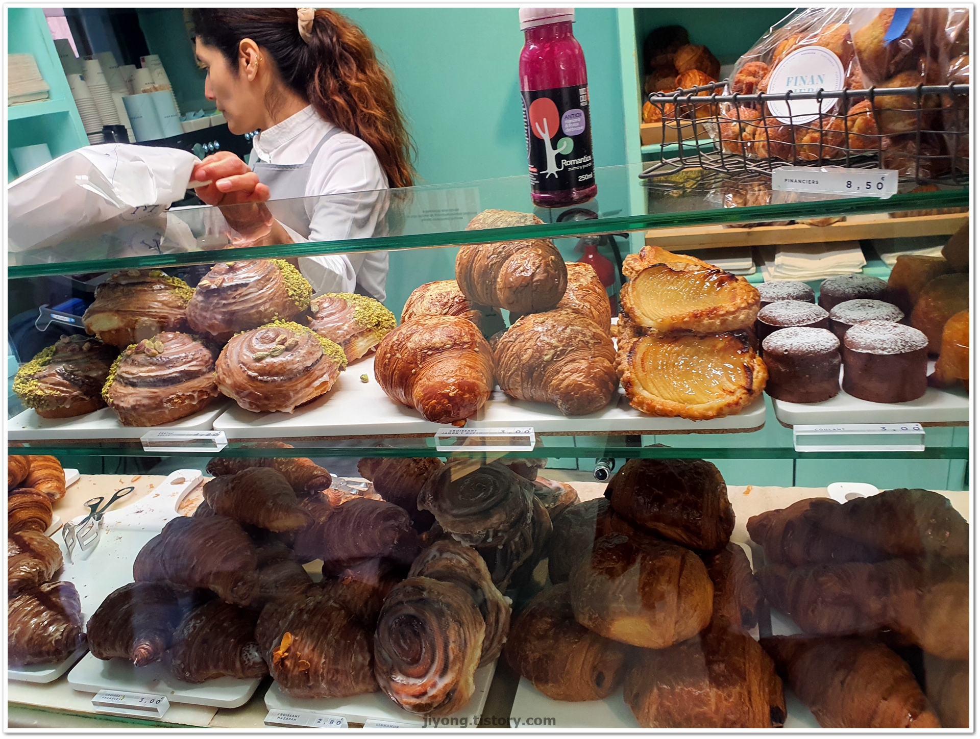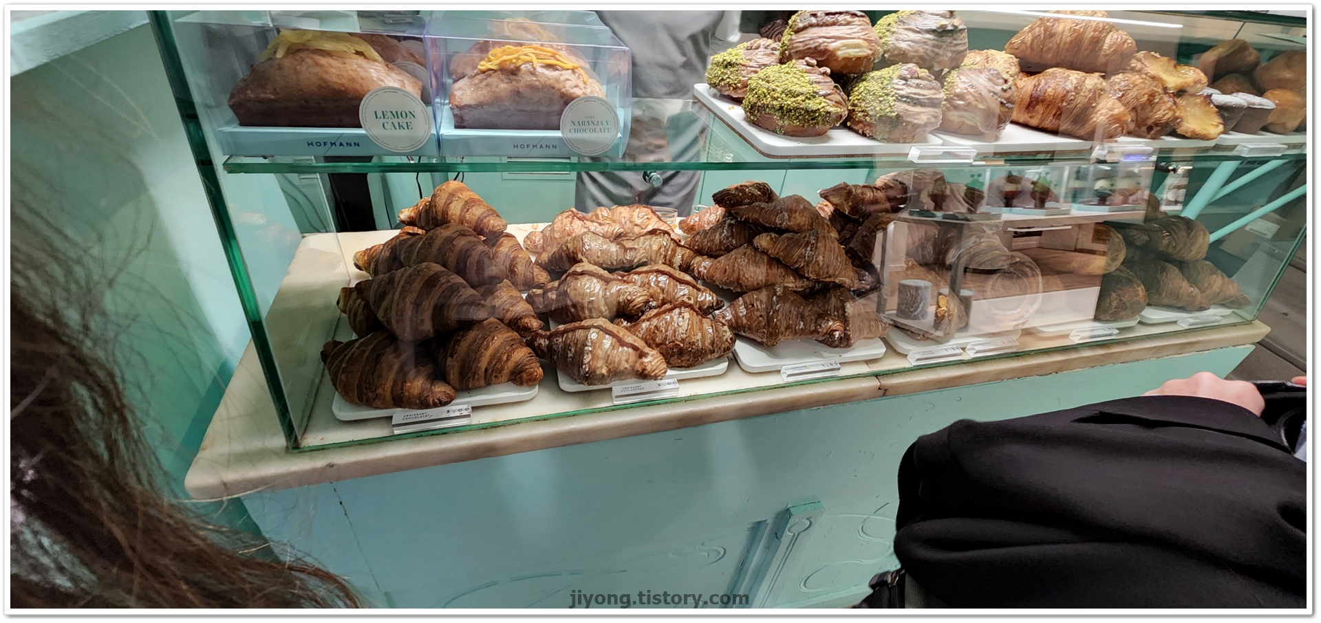 다양한 크루아상들이 있는데 내 맘 속에 1위 맛인 마스카포네 치즈 크루아상을 비롯하여 하몽 크루아상과 기본 크루아상을 주문했다. 가격은 10,8유로