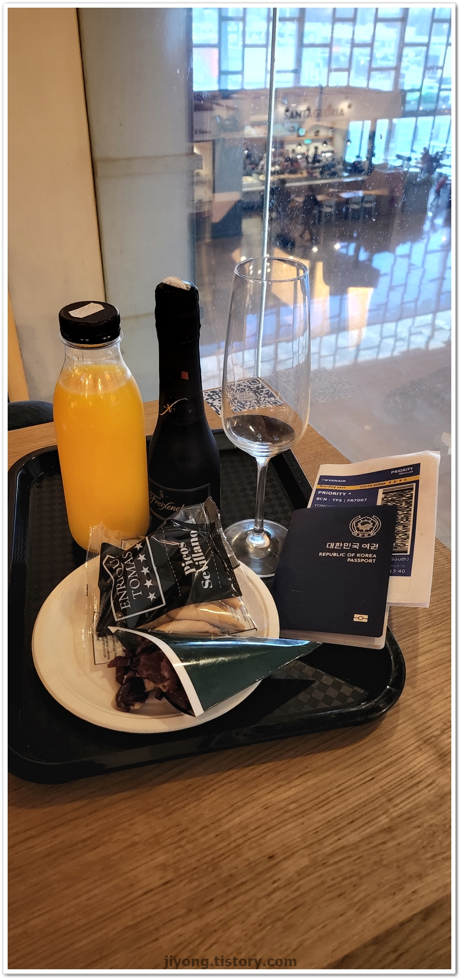체크인하고 난 이후에 카페에서 잠시 쉬며 까바와 착즙 오렌지 주스를 마셨다.
