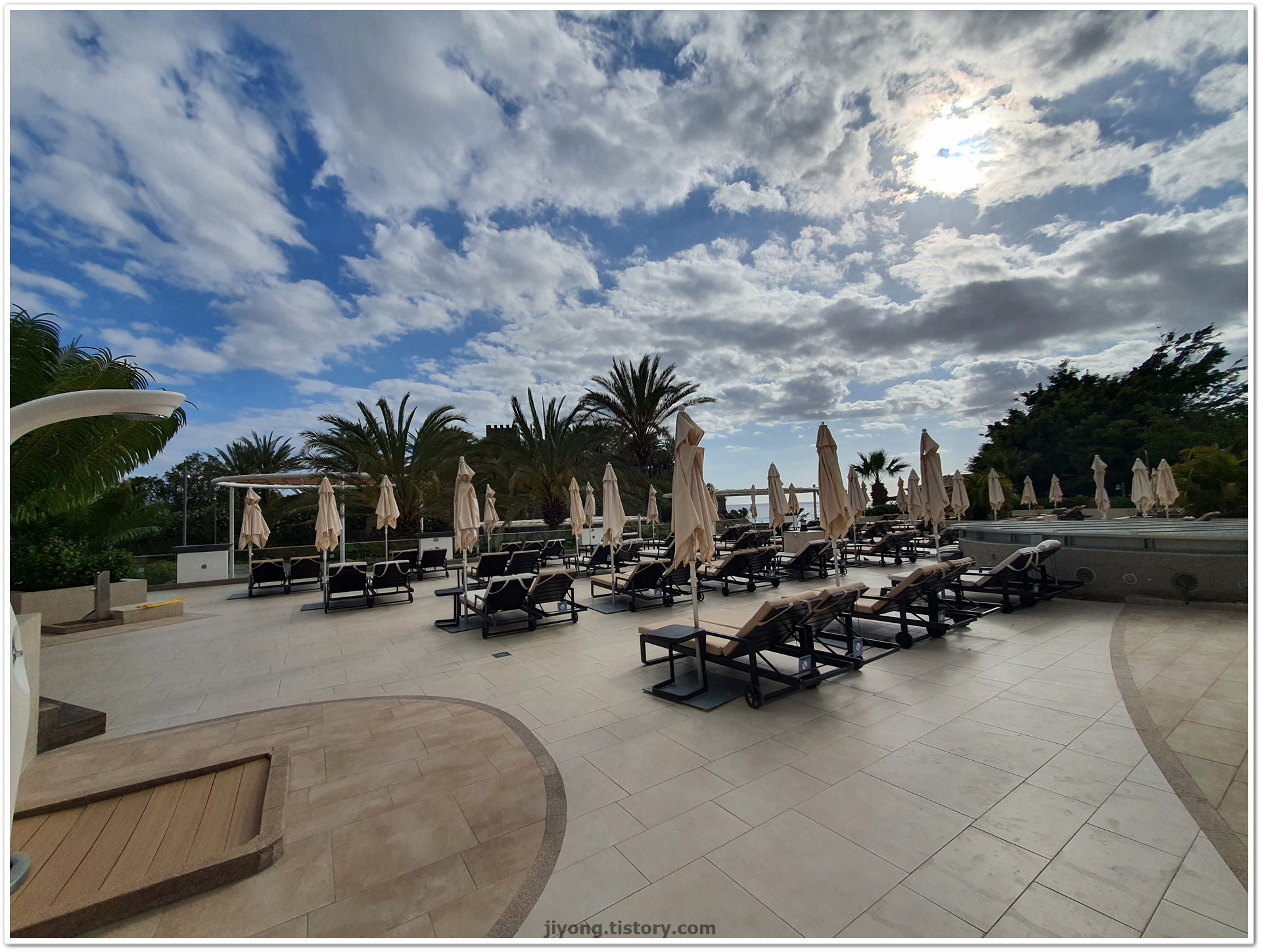 태닝존처럼 조성된 곳 선베드는 넉넉하게 있어 자리가 없지는 않지만 좋은 자리를 잡기 위해서는 일찍 나와 선베드를 맡는 게 좋다.