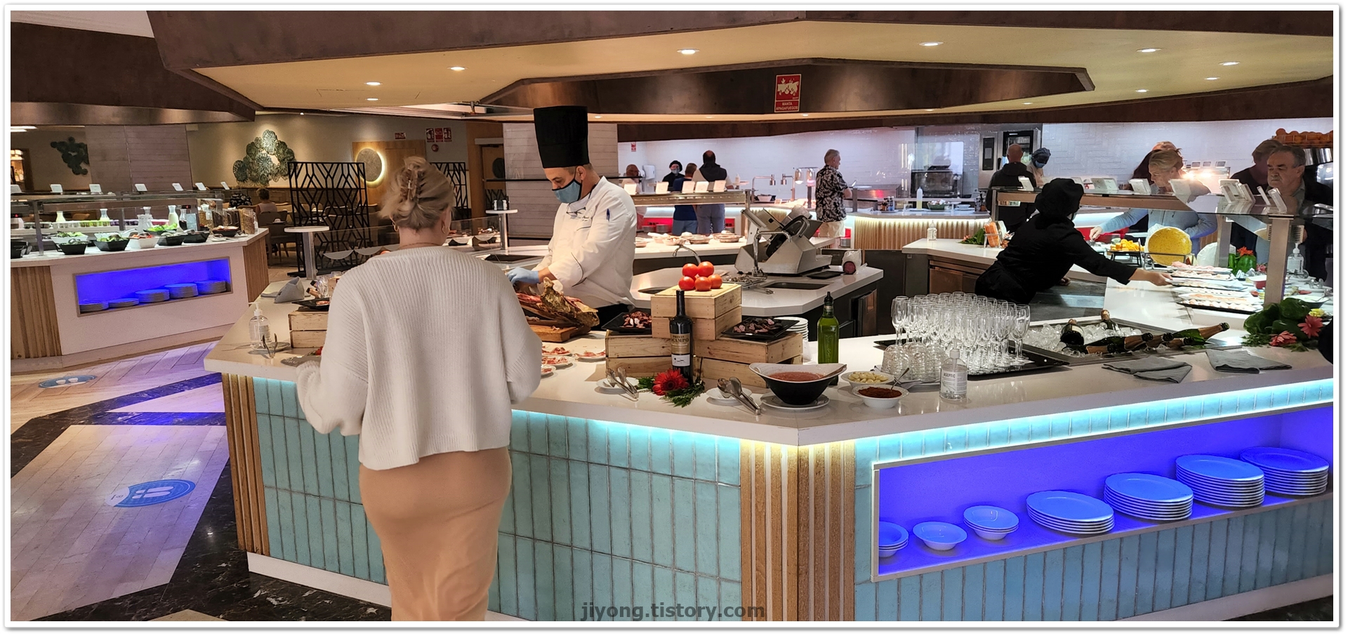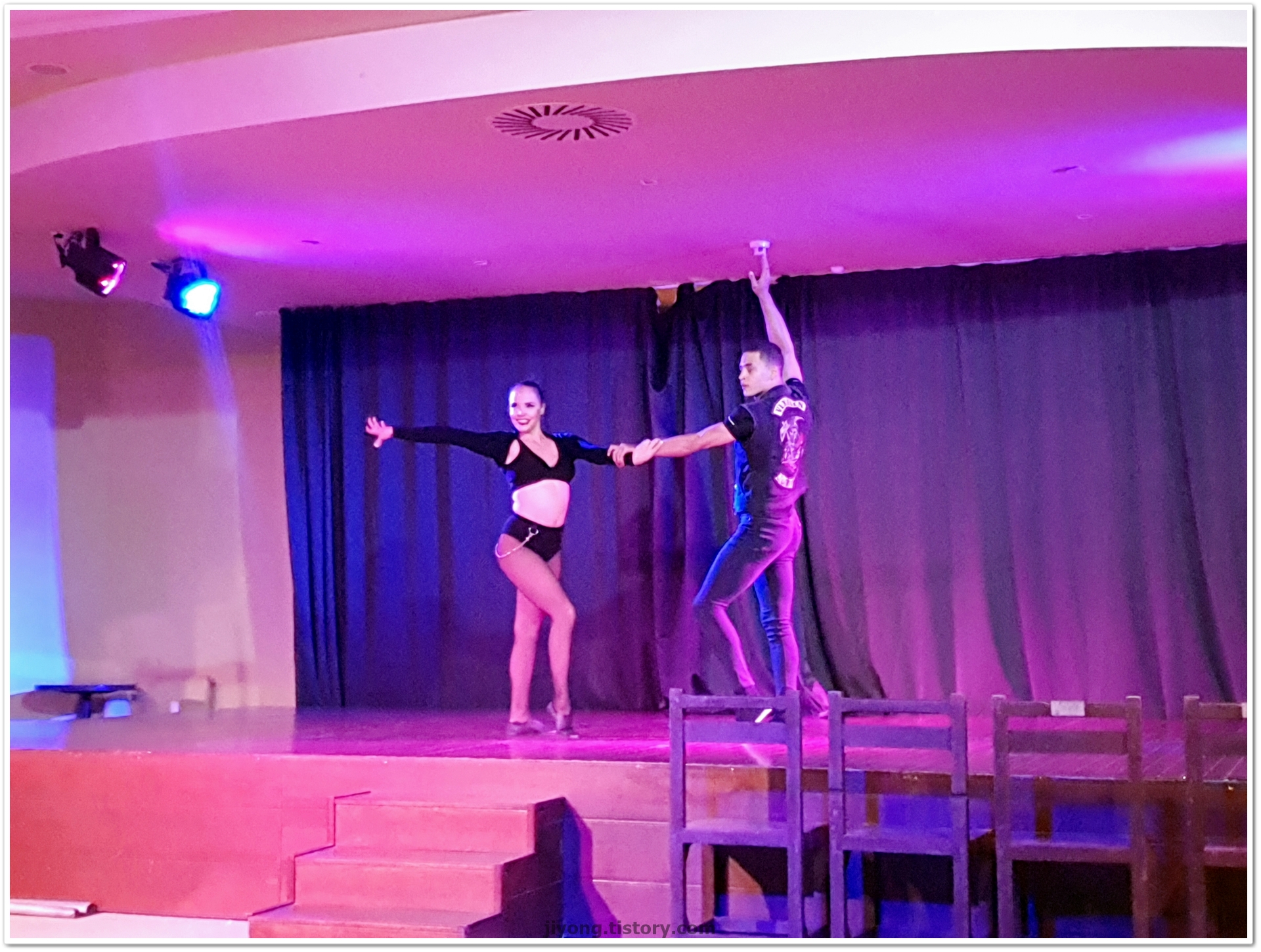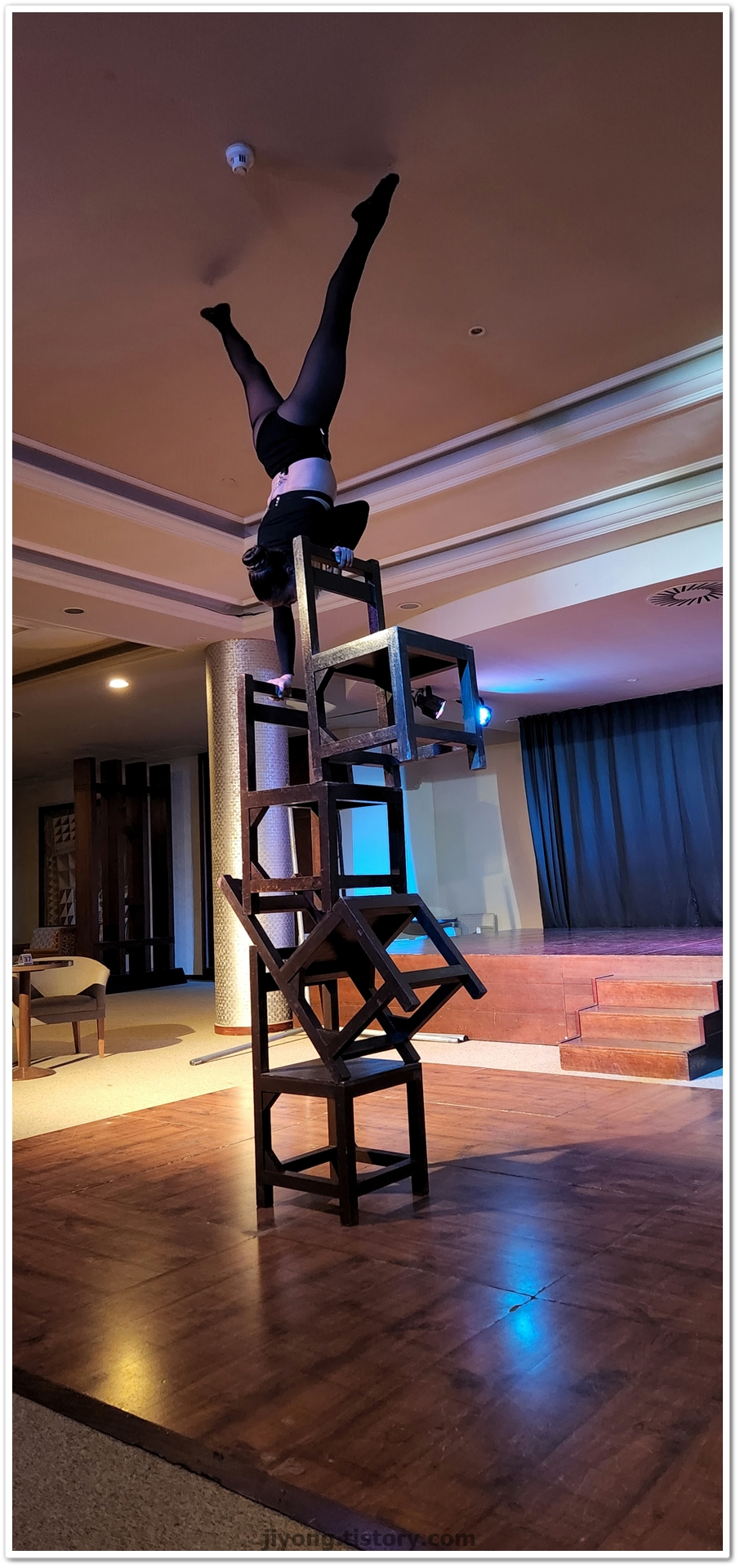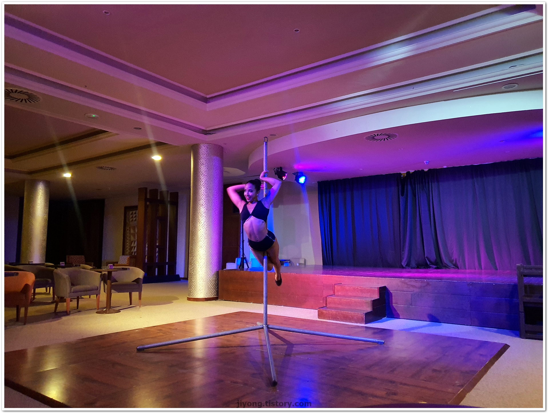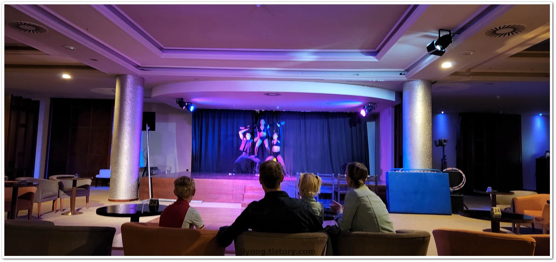 오늘 저녁엔 아크로바틱 쇼가 있어서 레스토랑 옆에 라운지로 가서 자리를 잡았다.