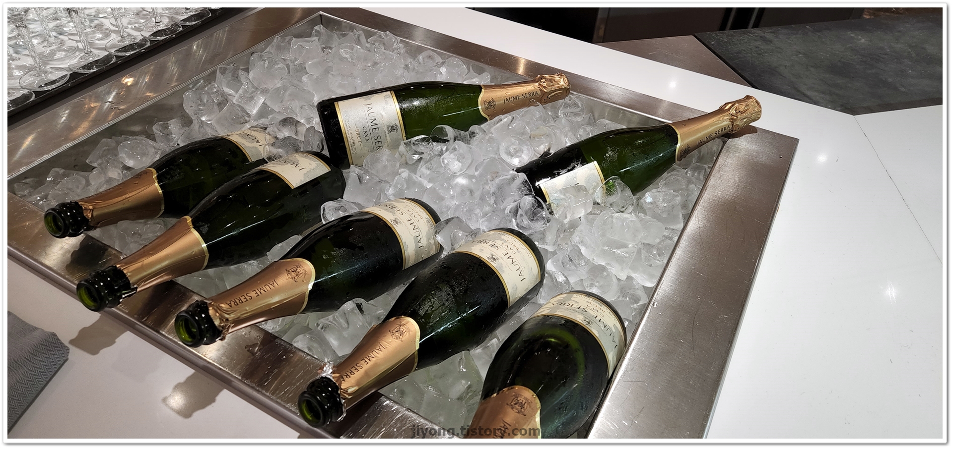 저녁의 술은 유료지만 아침의 까바는 무료로 마실 수 있다.