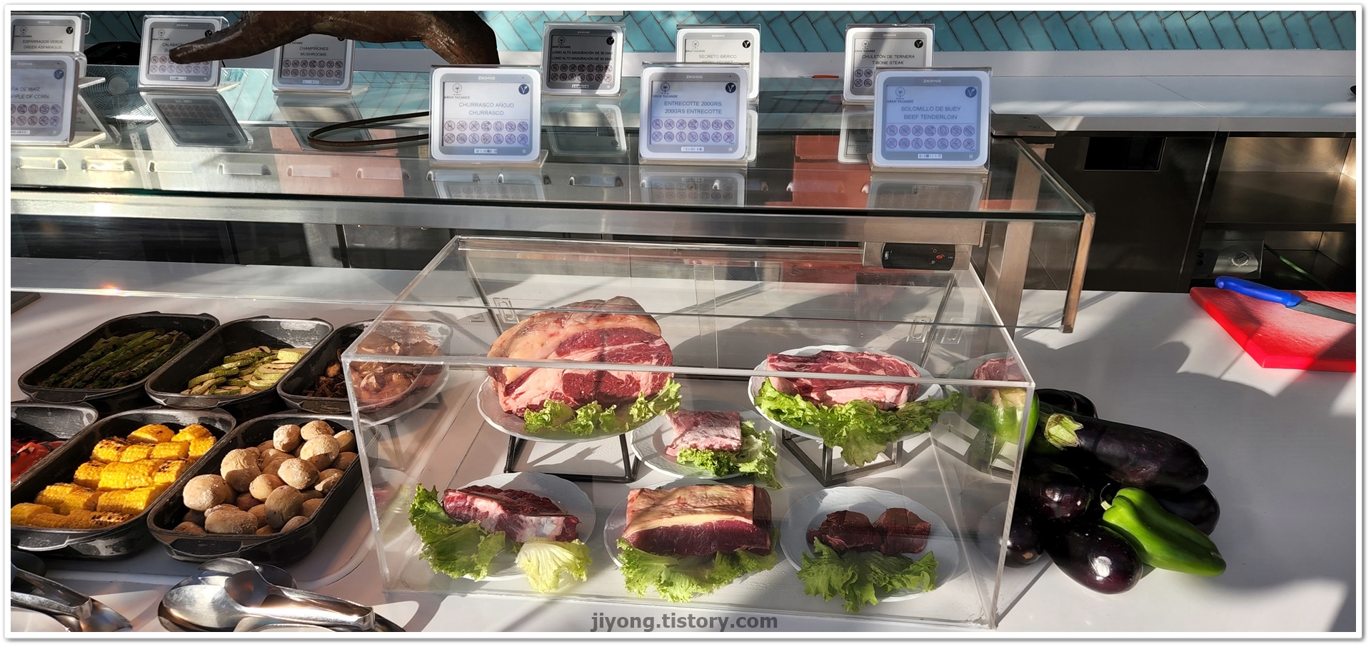 야외에 있는 그릴에선 T-born이나 이베리코 등심 등 다양한 부위를 주문할 수 있다.