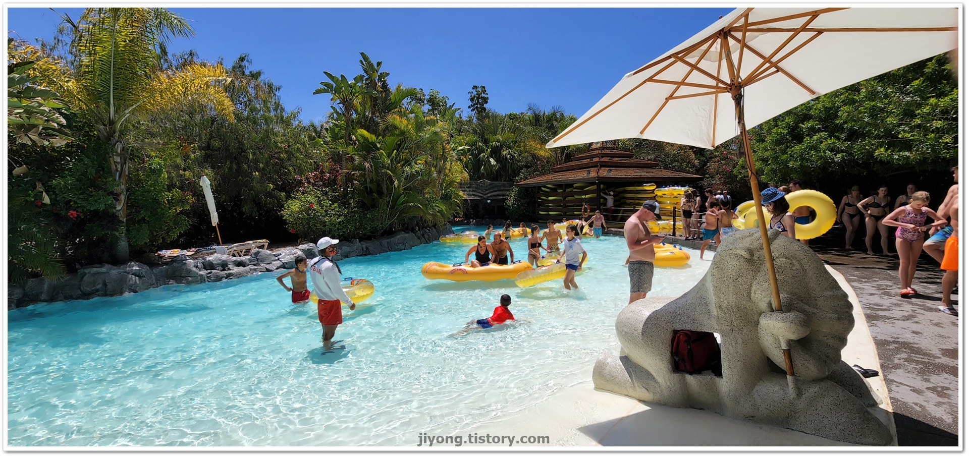 선글라스는 돌아다닐 땐 착용했다가 놀이기구를 이용할 때는 내 래시가드에 끼고 탑승했다.