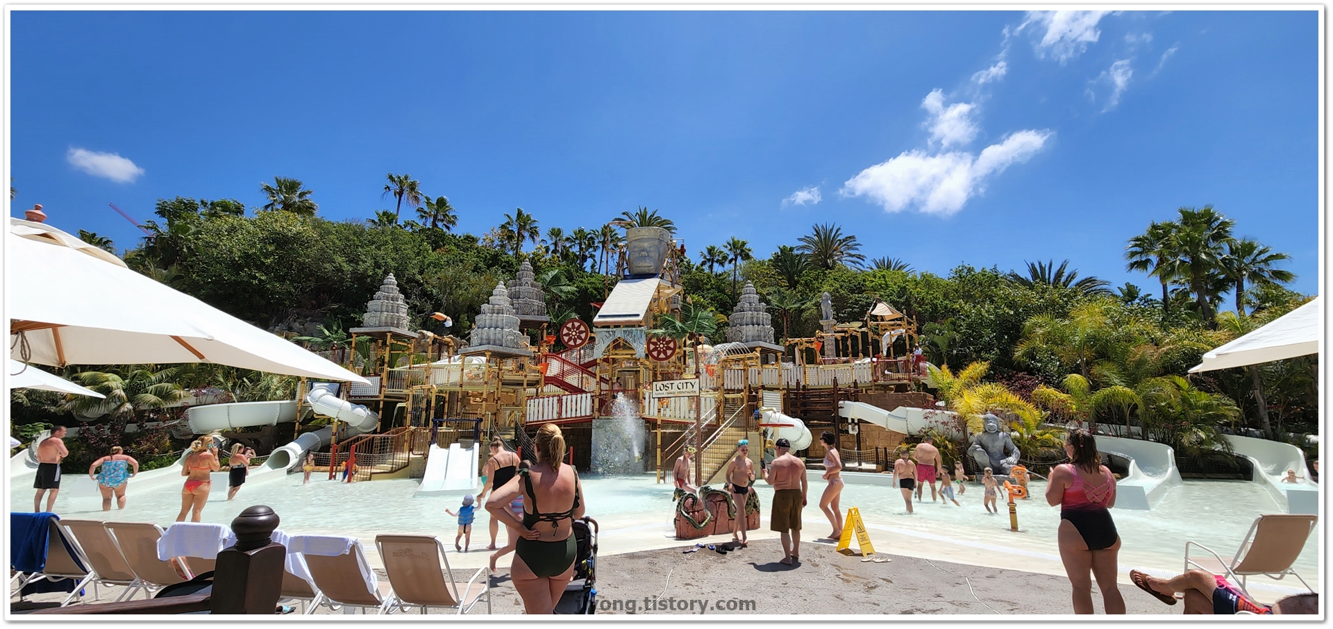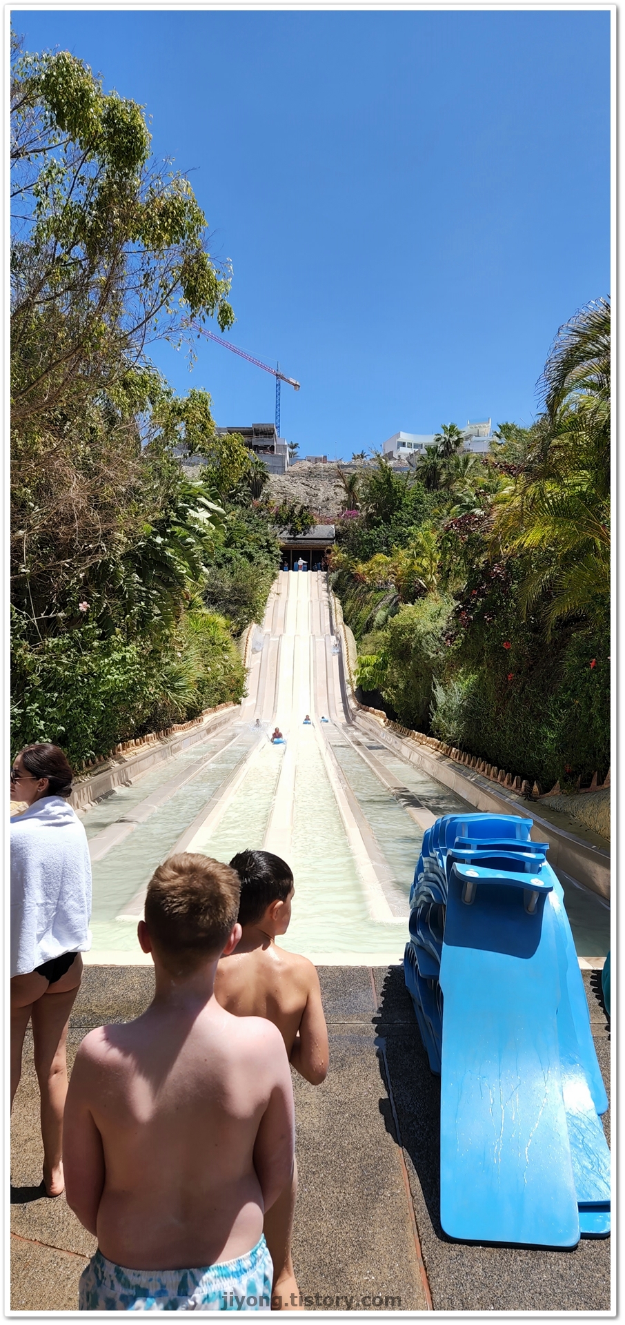 거의 대부분의 놀이기구가 튜브를 탑승하고 내려오는 미끄럼틀로 이루어져 있다.