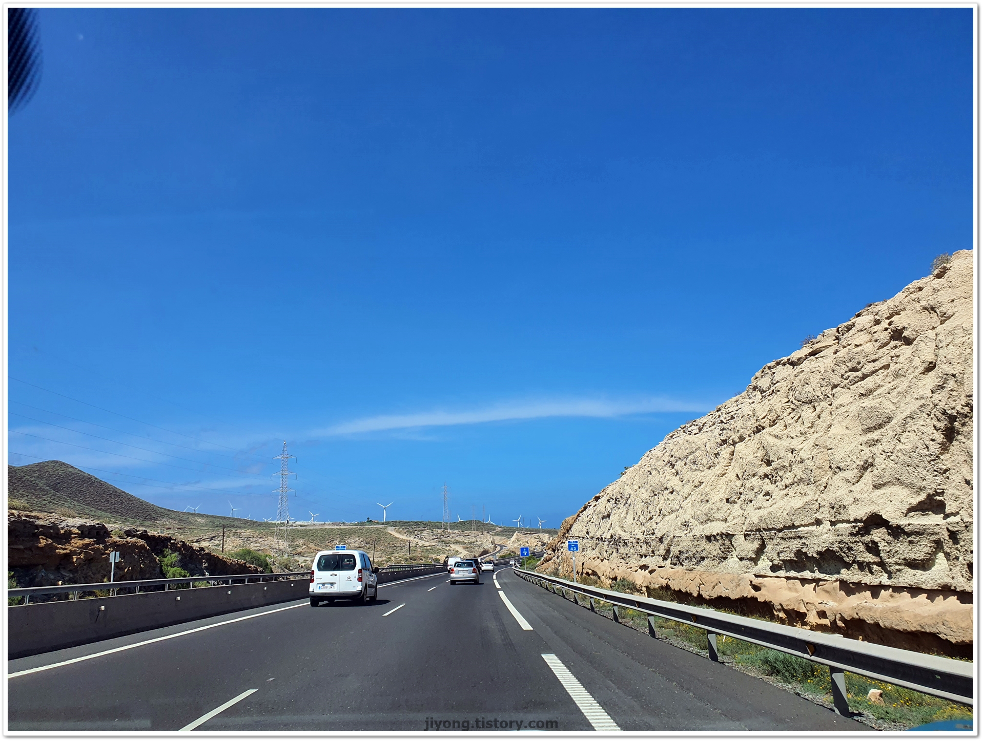 테네리페는 테이데봉 중심으로 섬을 둘러싼 해안도로가 있는데 북서쪽 도로보다는 남동쪽 도로가 고속도로라 차간 이동이 수월한 듯하다.