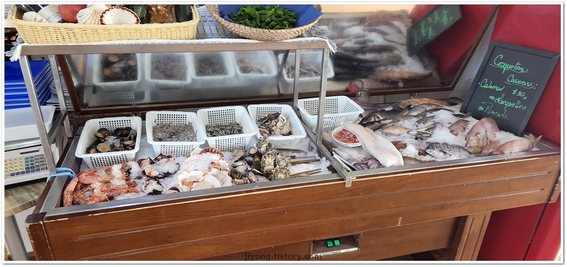 새우부터 가리비 오징어 대구 등 다양한 해산물들이 있고 직접 원하는 만큼 선택해서 담을 수 있다.