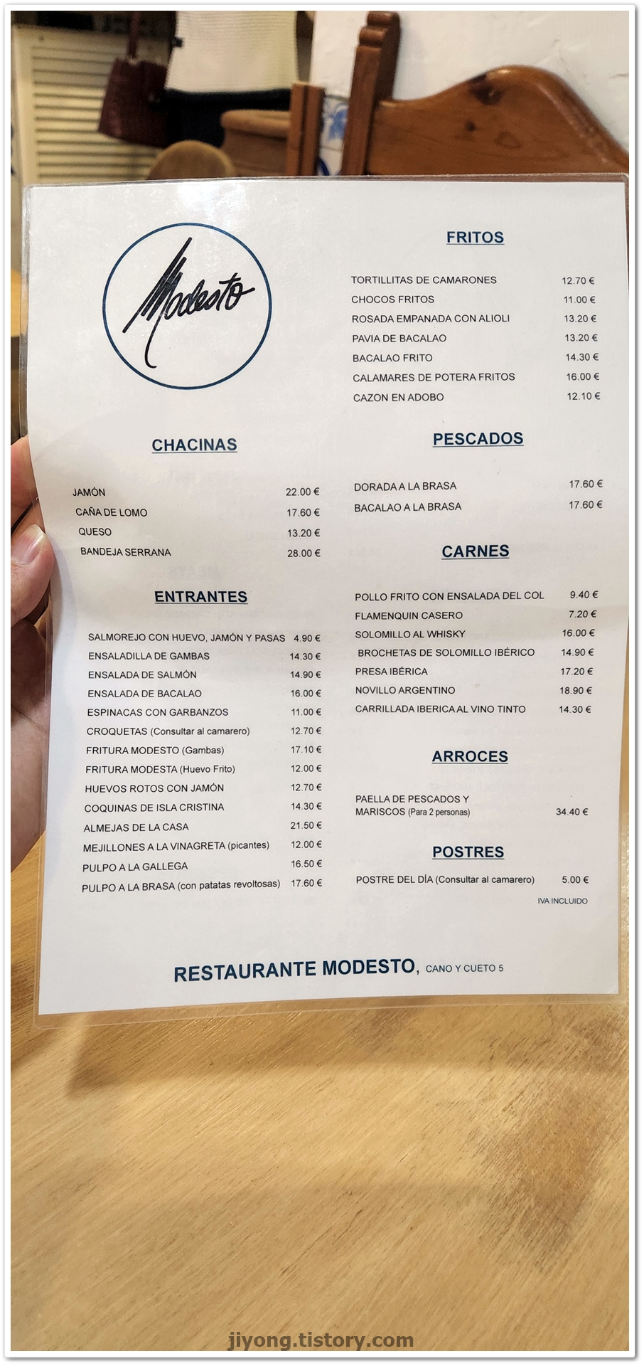 빠에야를 먹고 싶어 호스트분에게 추천받은 숙소 근처 Modesto Bar로 향했다.