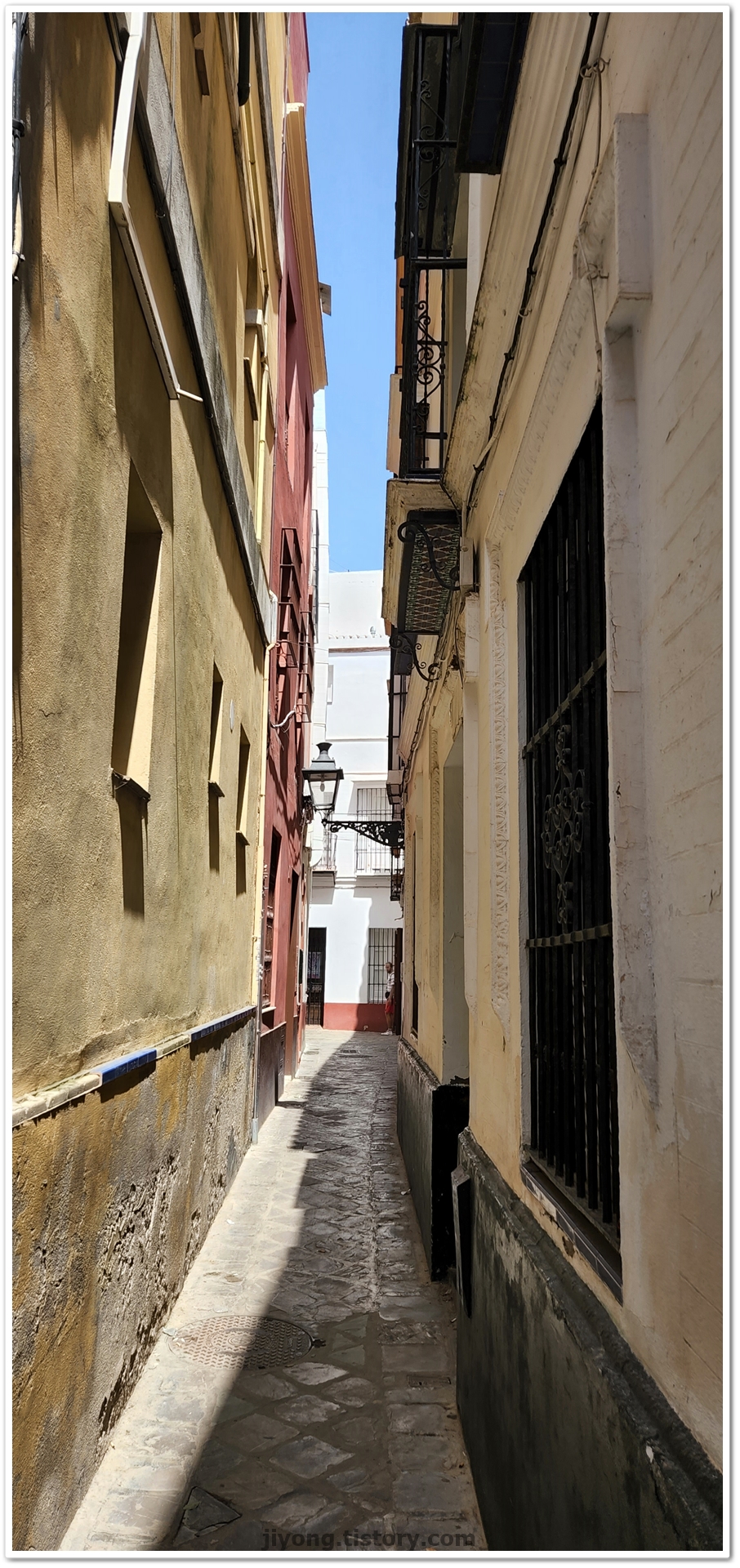 세비야의 구시가(유대인 지구)는 이러한 길들이 삐뚤빼뚤 나있다.