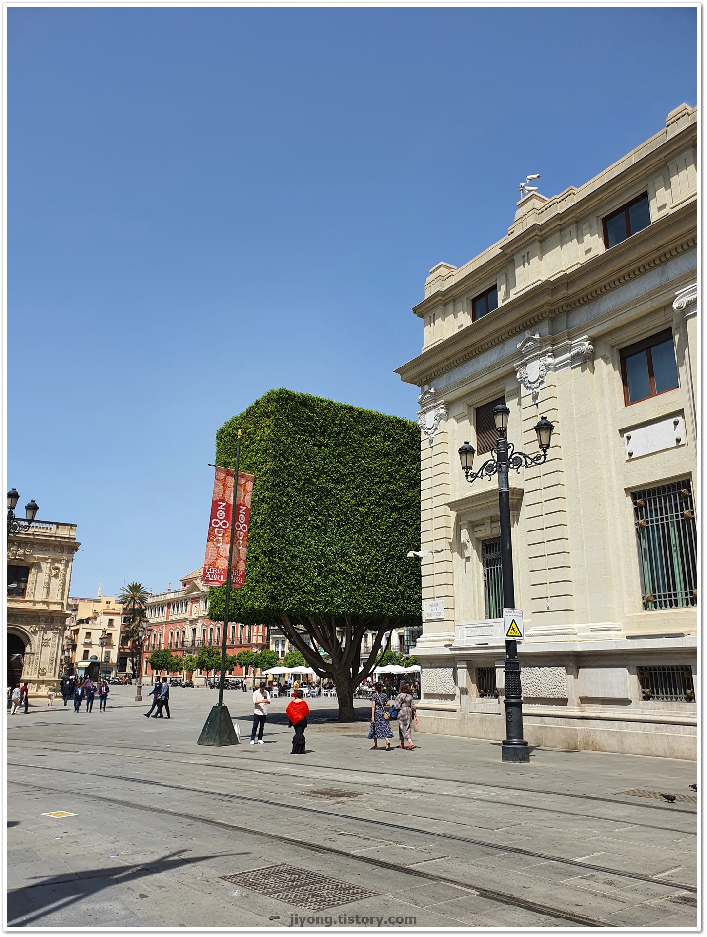 세비야는 오렌지 나무가 가로수처럼 심어져 있는데 참 신기하게도 나무를 네모나게도 자른다.