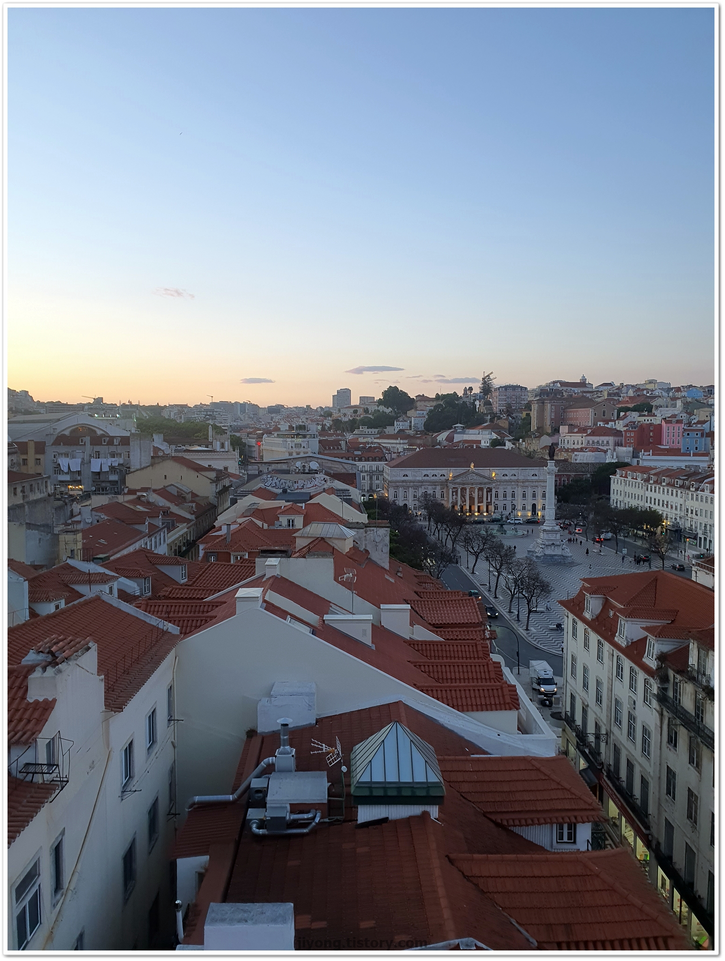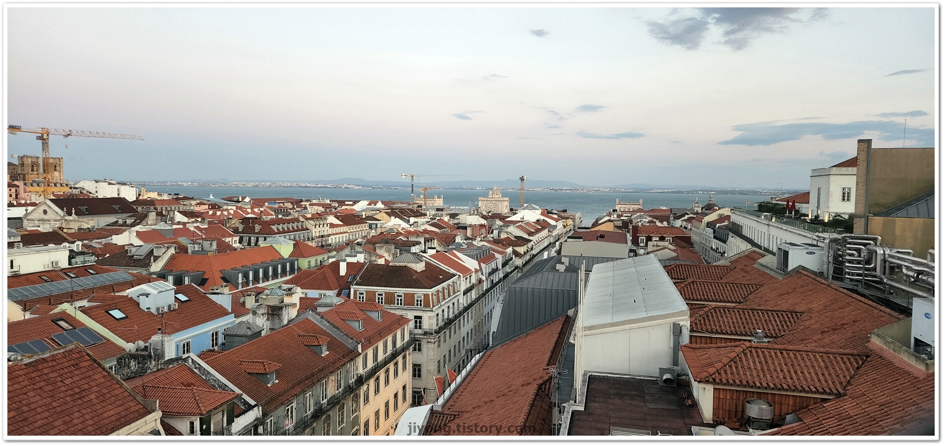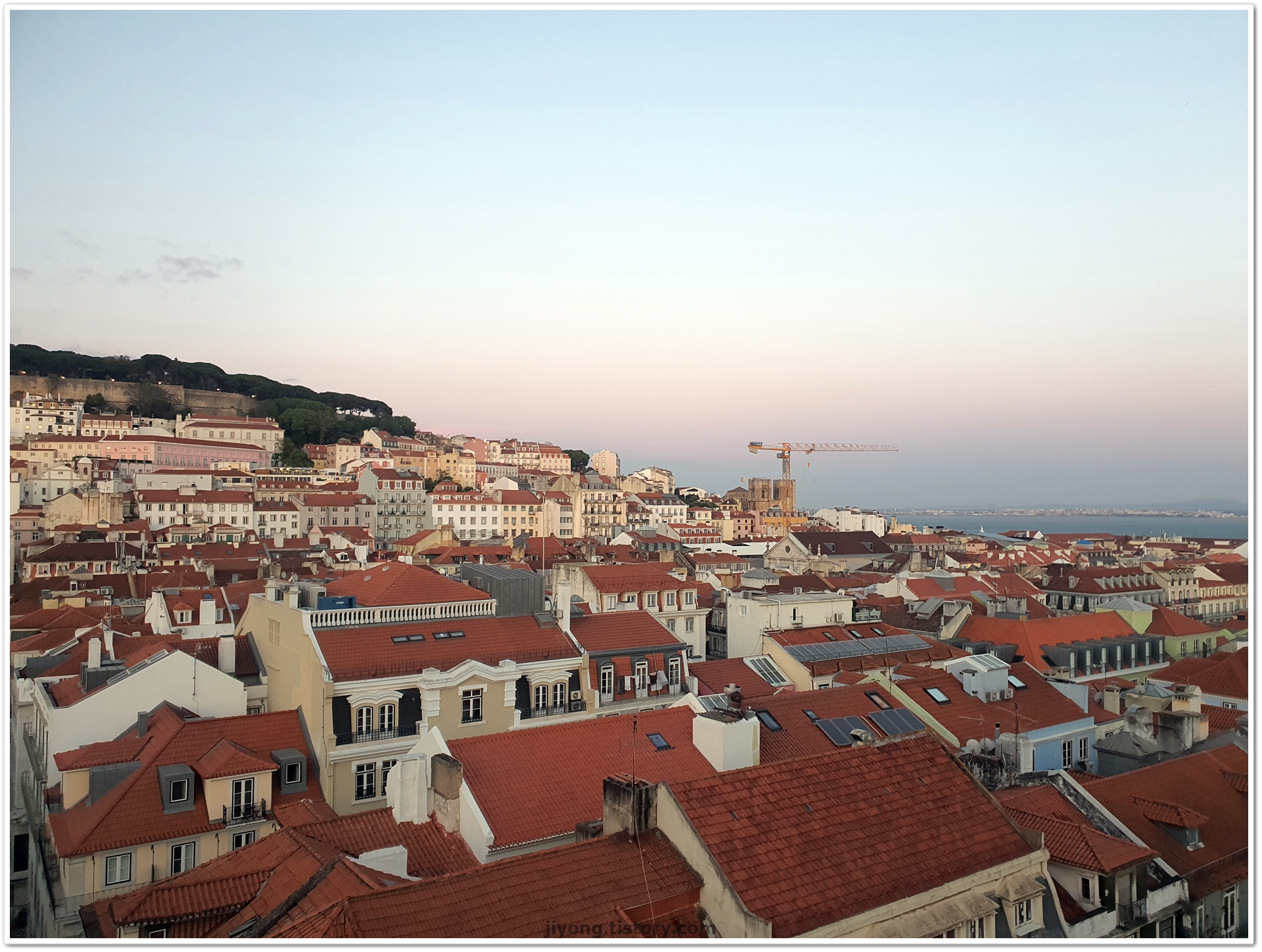 리스본 건물 지붕들이 다 적갈색이라서 일몰 때 보면 정말 장관이다. 특히 이 사진에 보이는 저 성 조루주 전망대에서 보면 일몰 바다 그리고 건물 지붕의 햇살이 비치는 모습이 하염없이 바라보게 된다.