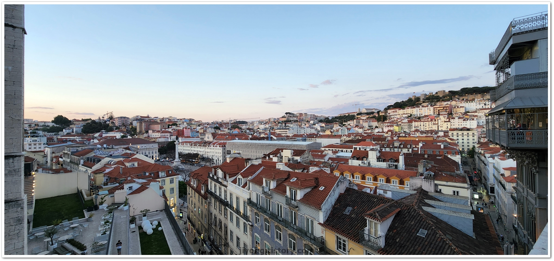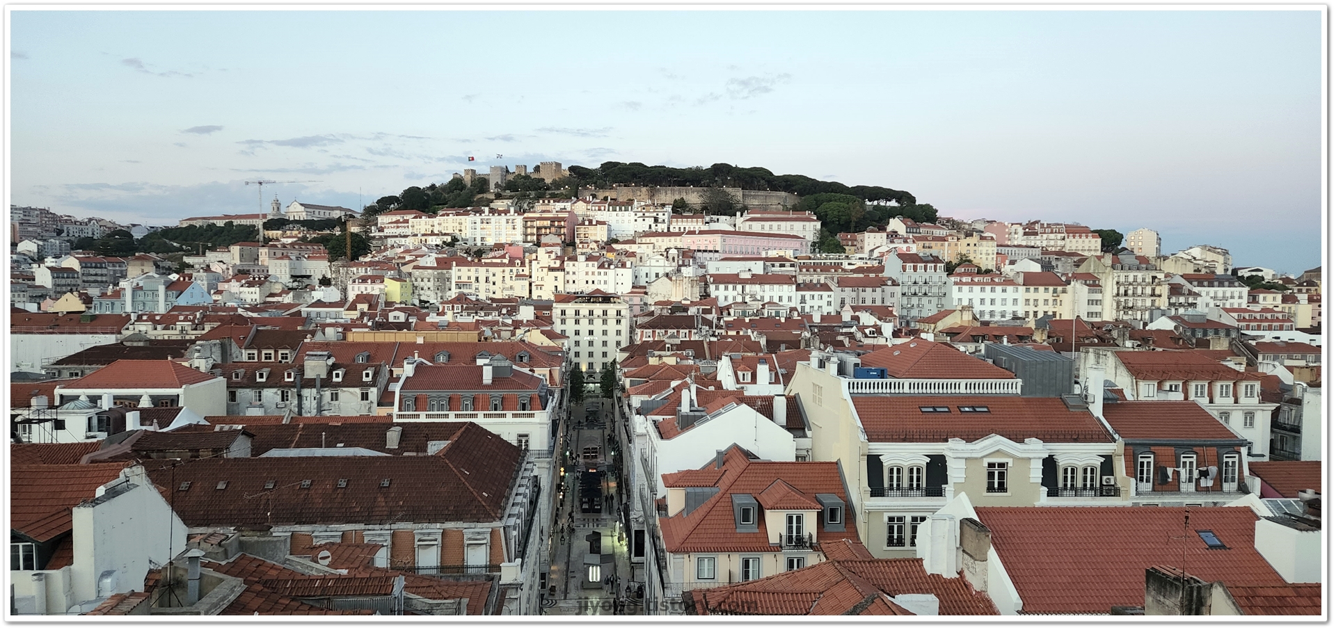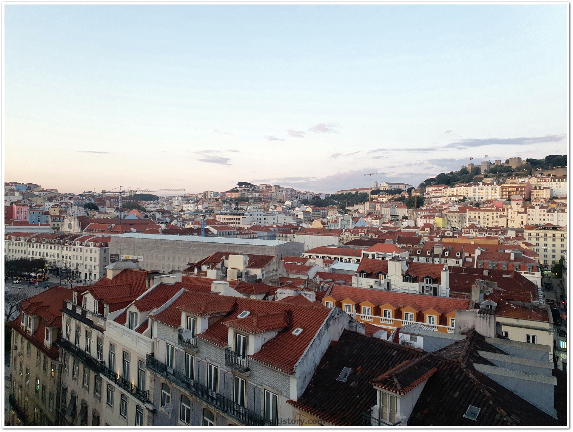리스본 건물 지붕들이 다 적갈색이라서 일몰 때 보면 정말 장관이다. 특히 이 사진에 보이는 저 성 조루주 전망대에서 보면 일몰 바다 그리고 건물 지붕의 햇살이 비치는 모습이 하염없이 바라보게 된다.