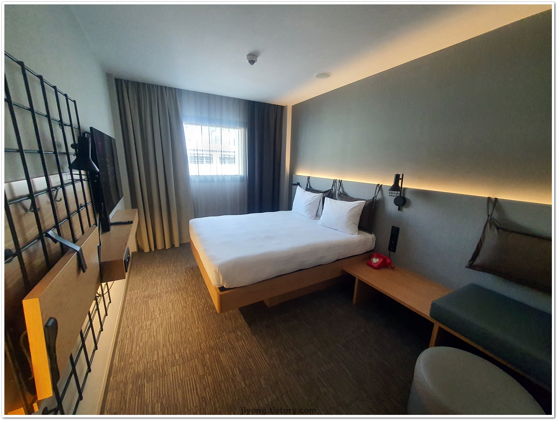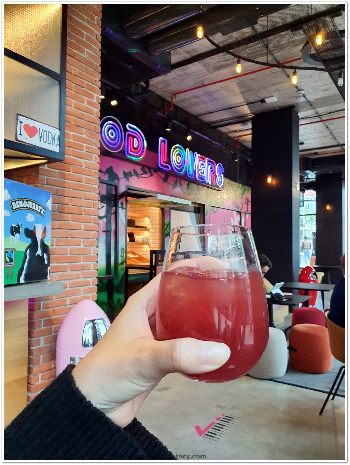 호텔은 메리어트 계열에 목시 리스본을 예약했는데 힙하디 힙한 1층 로비에서 웰컴 드링크를 제공해주었다.