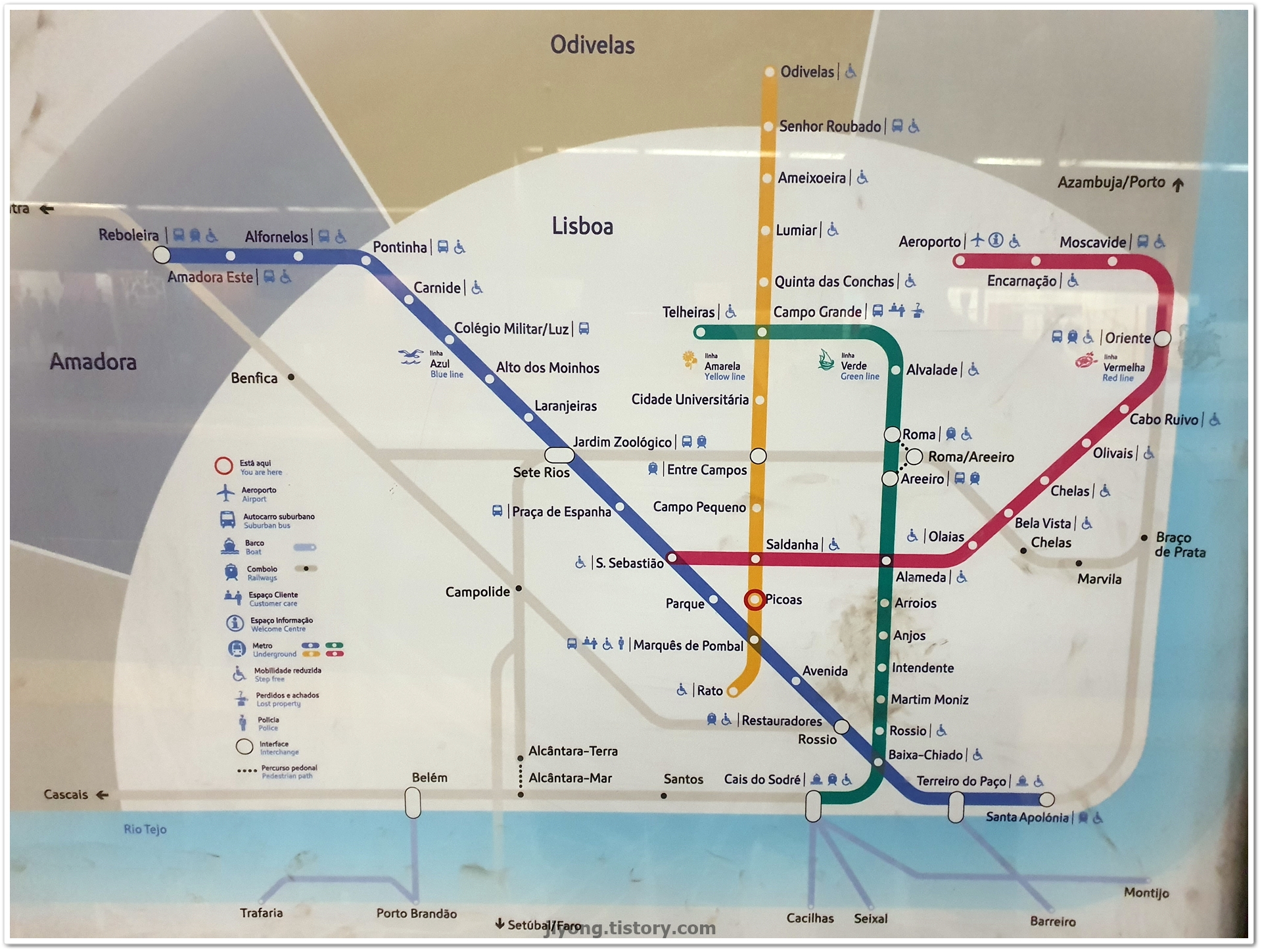 호시우(Rossio)로 가기 위해 전철을 타고 이동했다 환승도 어렵지 않았다.